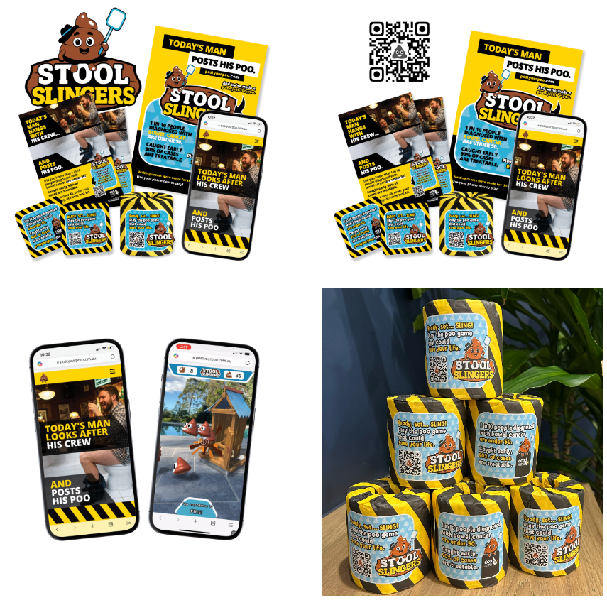 At its centre is a cheeky augmented reality game called Stool Slingers, featuring Billy the Skid — a virtual outlaw slinging poo and awareness in equal measure. Players can take aim at virtual stool samples (yes, really) while learning about early detection and how to access a free screening kit.