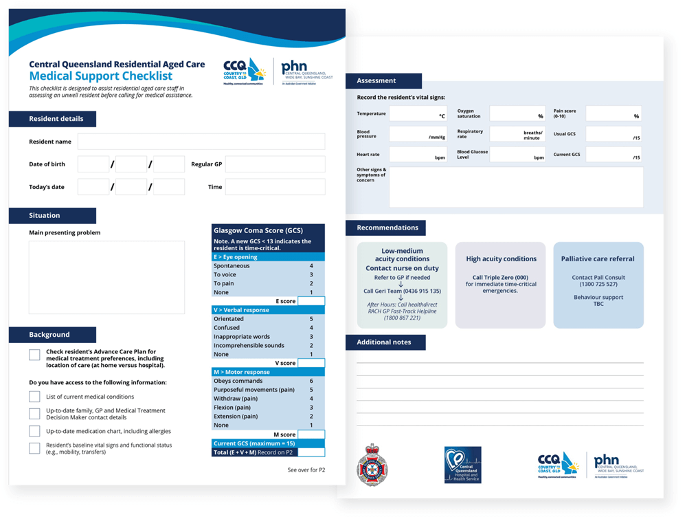 Designed to assist residential aged care staff in assessing an unwell resident before calling for medical assistance.