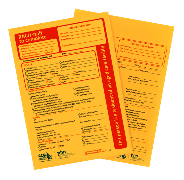 The Yellow Envelope is a simple, highly visible tool used during clinical handover when residents move between aged care facilities and hospitals. It keeps critical information with the resident, improving safety, care quality and continuity.